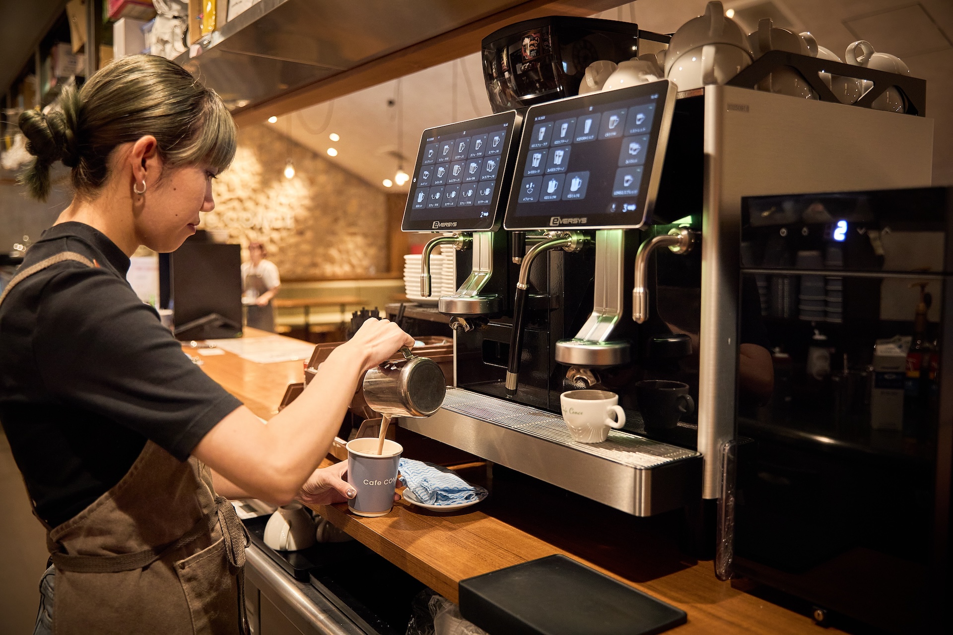 これまでボトルネックとなっていたドリンク提供がスムーズになり、フードと同時に提供できるようになりました。お客様の待ち時間が短縮され、回転率の向上にもつながっています。また、スタッフのスキルに左右されず高品質なコーヒーを安定して提供できるため、教育負担が軽くなり、シフト管理も効率的になりました。清掃に関しても、自動洗浄機能のおかげで作業時間が大幅に短縮されています。