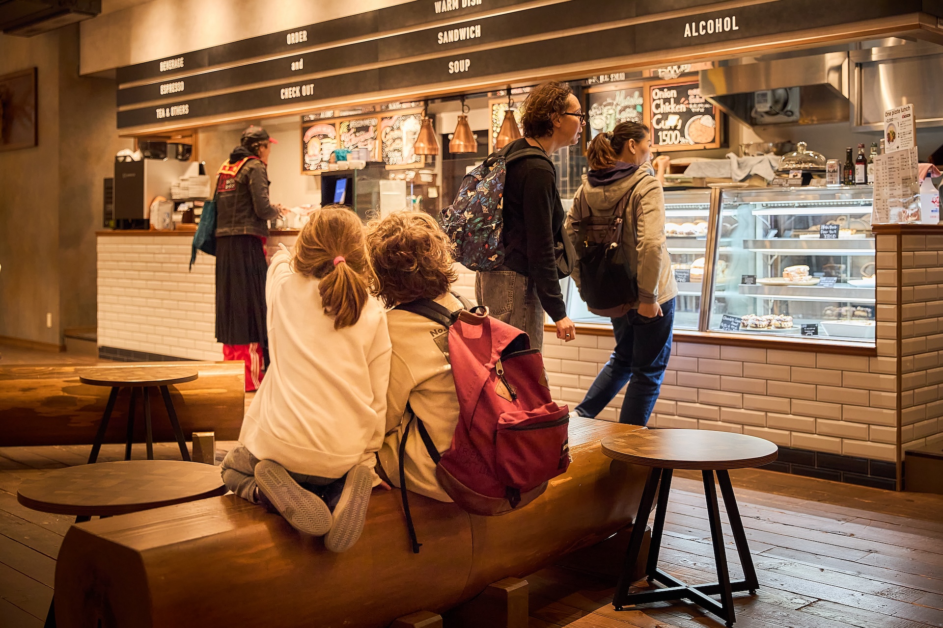 世界中からお越しの外国人観光客が安心して美味しいコーヒーや簡単な食事で安らぎを感じるお店。日本風に偏った雰囲気やメニューにこだわらず、誰もが分かりやすく馴染みあるメニューを提供し、観光の疲れを癒し次の目的地に出発するためのスペースとした。